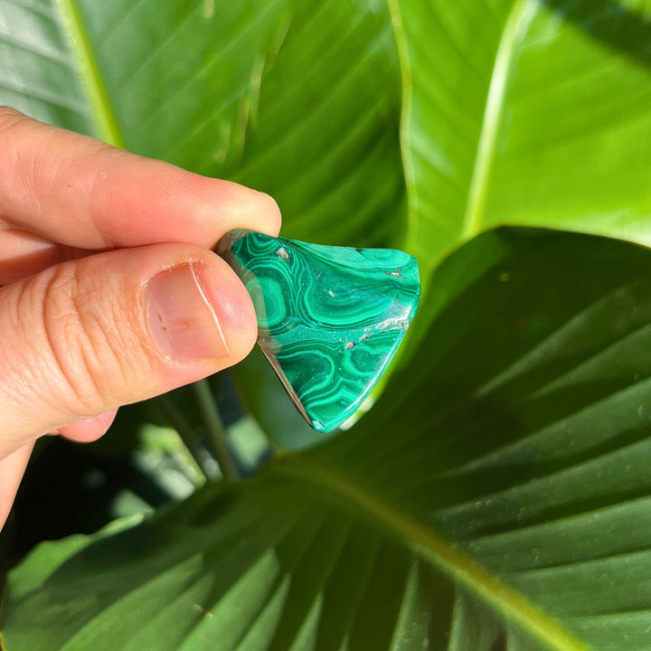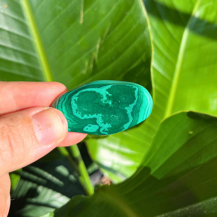 Each piece is totally unique - with waves, circles and lines. We chose this malachite because it was especially beautiful in the way that the layers of rich green striations presented once polished. Take them in your pocket whilst you go about your day. Or place it in an ensemble of crystals on a surface. A collection of minerals is not complete without one.