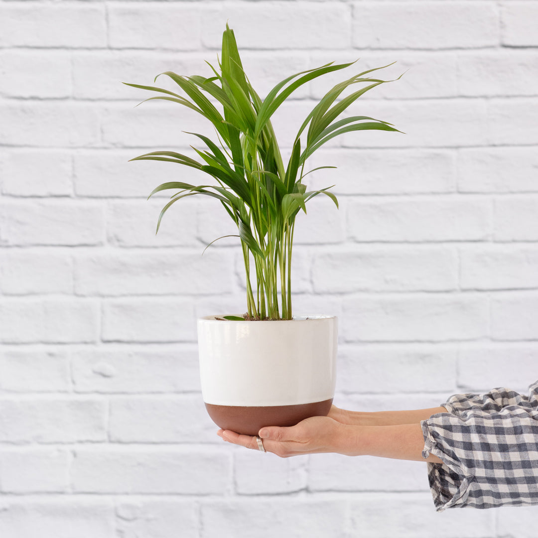 We've paired our this attractive palm with our sleek, matte black and a glossy mustard Emerson pot cover for a really elevated look. The Parlor Palm has been a popular plant since the Victorian era when it was considered fashionable to keep tropical plant specimens indoors.