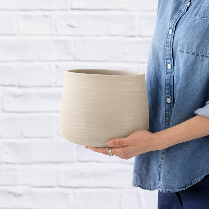 The Helia planter not only looks good but is super practical as it has a drainage hole, making it the ideal planter for directly planting your plant into or using outdoors, where the worry of making a mess is less of a concern.