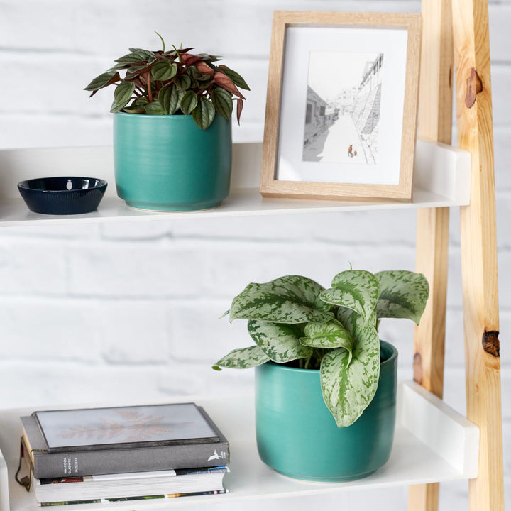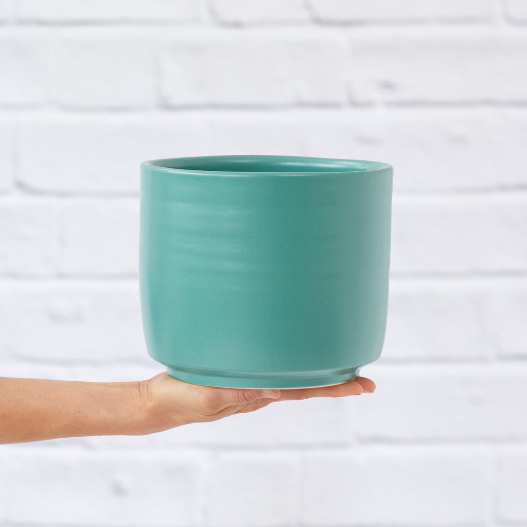 And its beautiful Teal Blue glaze give quirky contemporary finish that goes surprisingly well with green foliage hues. Choose from 3 sizes to cover 12cm to 20cm Nursery Pots.