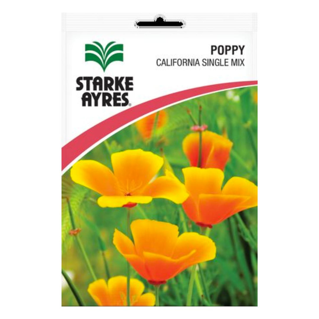 This flower seed produces a drought-tolerant mixture of Californian poppies in shades of white, yellow and orange. Annual variety.