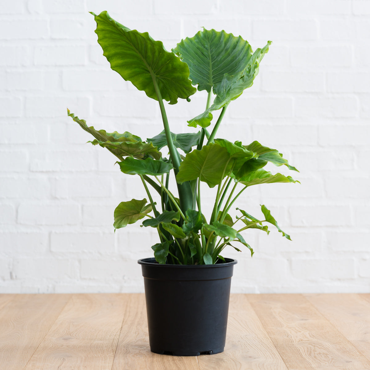 The Alocasia family brings us many exquisite species and the Macrorrhiza is no exception. Starting off lush and bushy when small, this houseplant will develop a nice strong stem with a crown of large fanning statement leaves as it matures.