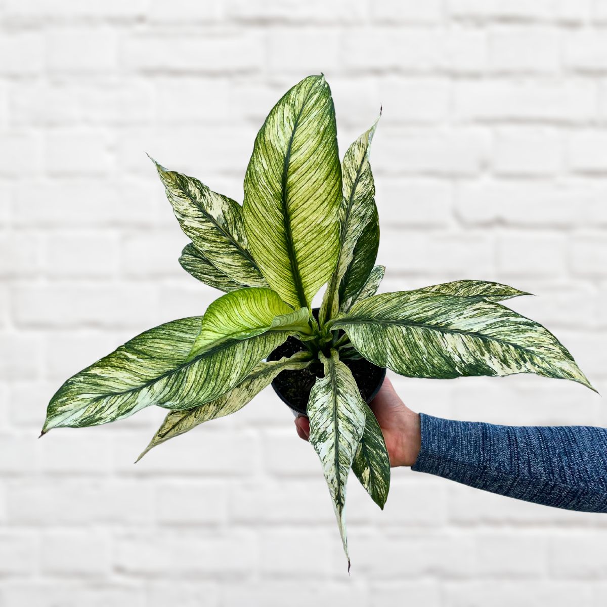 Peace Lily's are popular indoor plants due to their care easy nature, sculptural look and gorgeous white flowers. The foliage of the Sensation variety is especially striking due to its large glossy leaves that are adorned with distinct ribbed patterning.